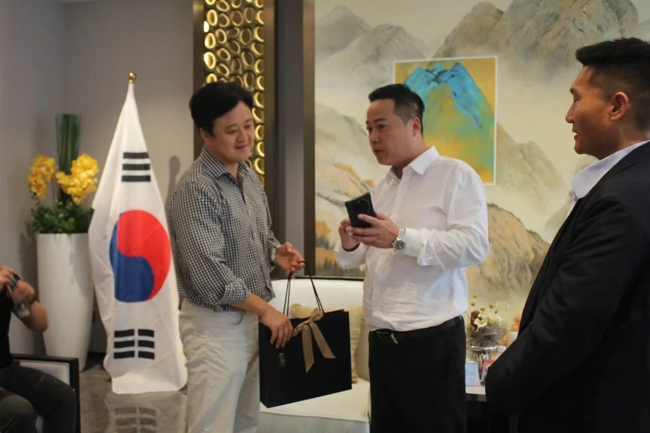 At the end of the event, Minister Yu Zaidong and Mr. Fan Jun led their respective teams to have friendly discussions. Mr. Fan Jun first presented a gift to the Korean guests - the Silk National Gift. The guests expressed their gratitude and gained a detailed understanding of the technology and features of the "Han Ge board".